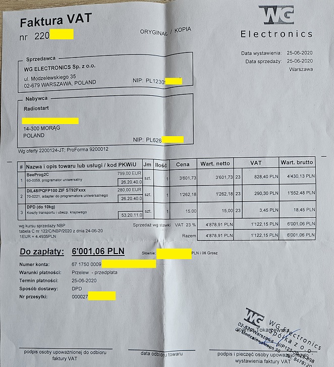 Posiadam Faktury zakupu jak na zdjęciach. Programator w bardzo dobrym stanie bez żadnych zarysowań, wygląda tak jak gdyby był dopiero zakupiony.