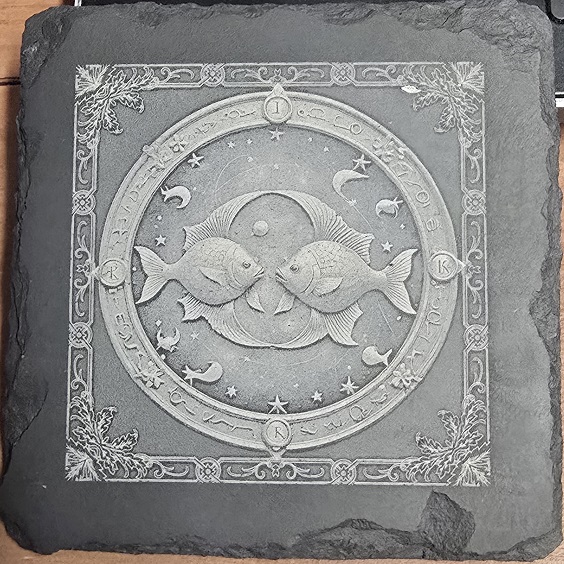Znaki zodiaku wykonane na metalu Stainless i na łupku kamiennym.