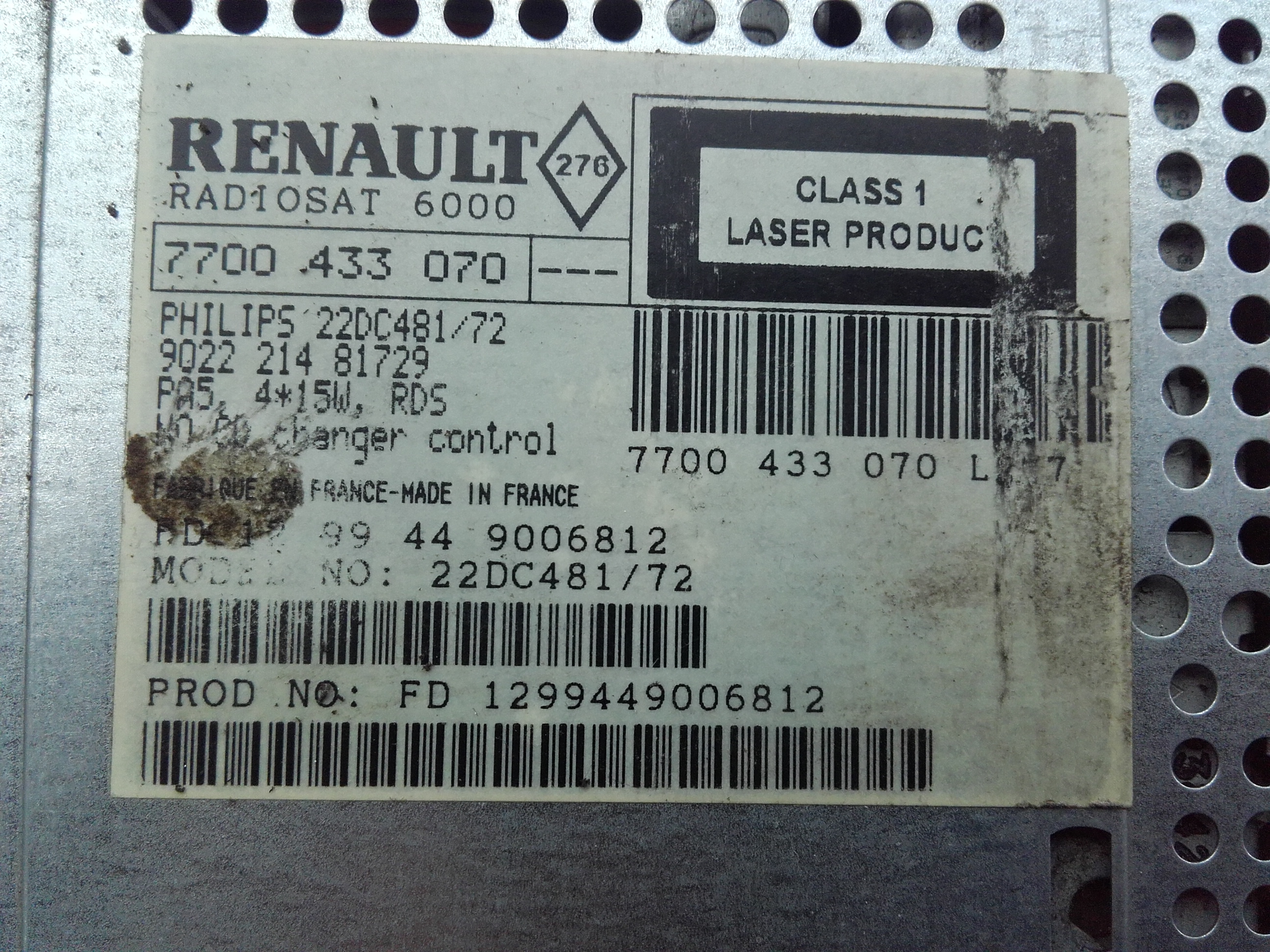 reno laguna radio sat 6000 model. 22dc481/72
