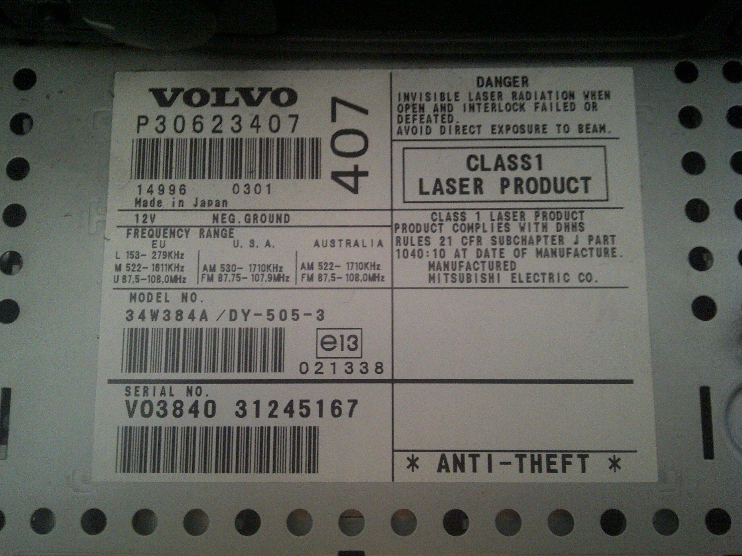 Proszę o kod do radia Hu-555 z Volvo V40 2003r.