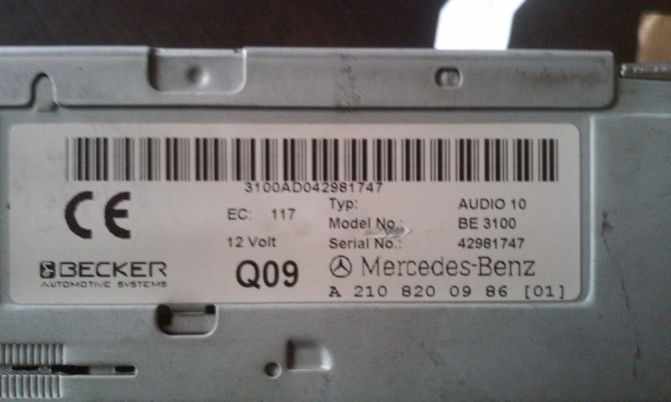 kod do mercedesa a klasy AUDIO 10 Becker 3100