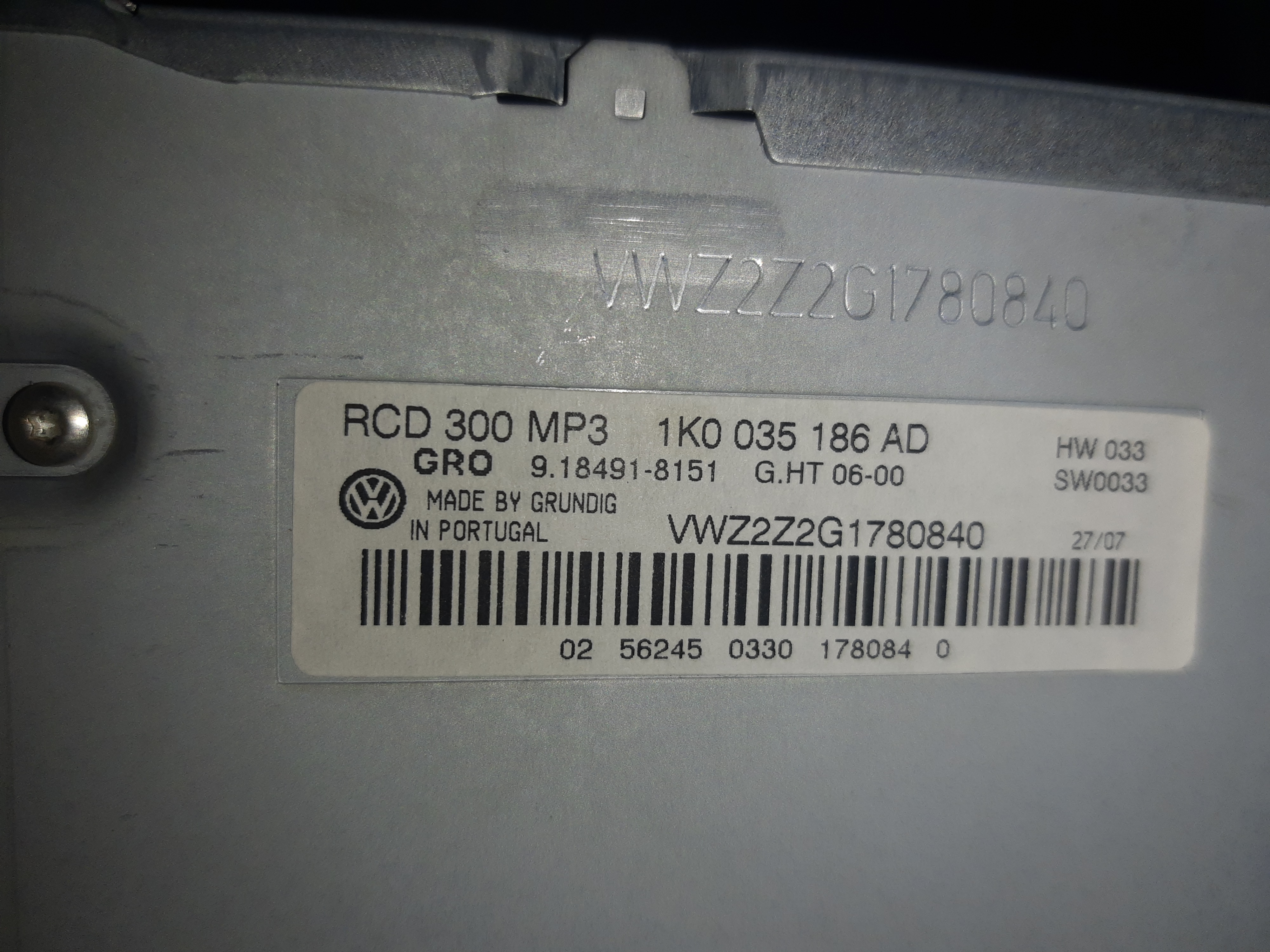 Oraz kod do radia VW passat b6 RCD 300 mp3