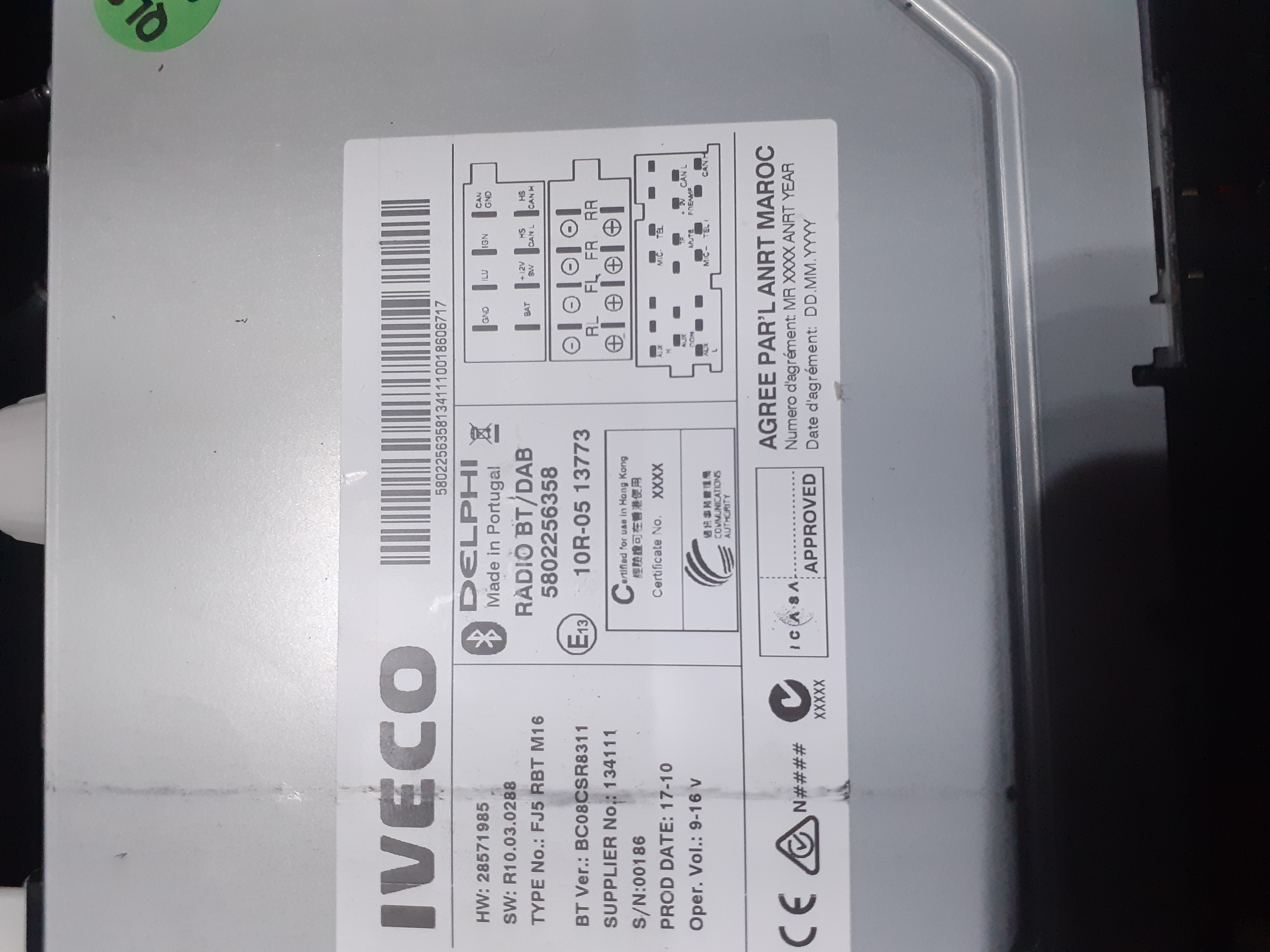 Witam potrzebuje kodu do radia Iveco 2017r nr.vin ZCFC135D9H5173465 DZIEKUJE Z GORY ⁸