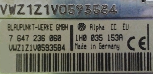 Kod do radia Vw Blaupunkt Alpha CC EU