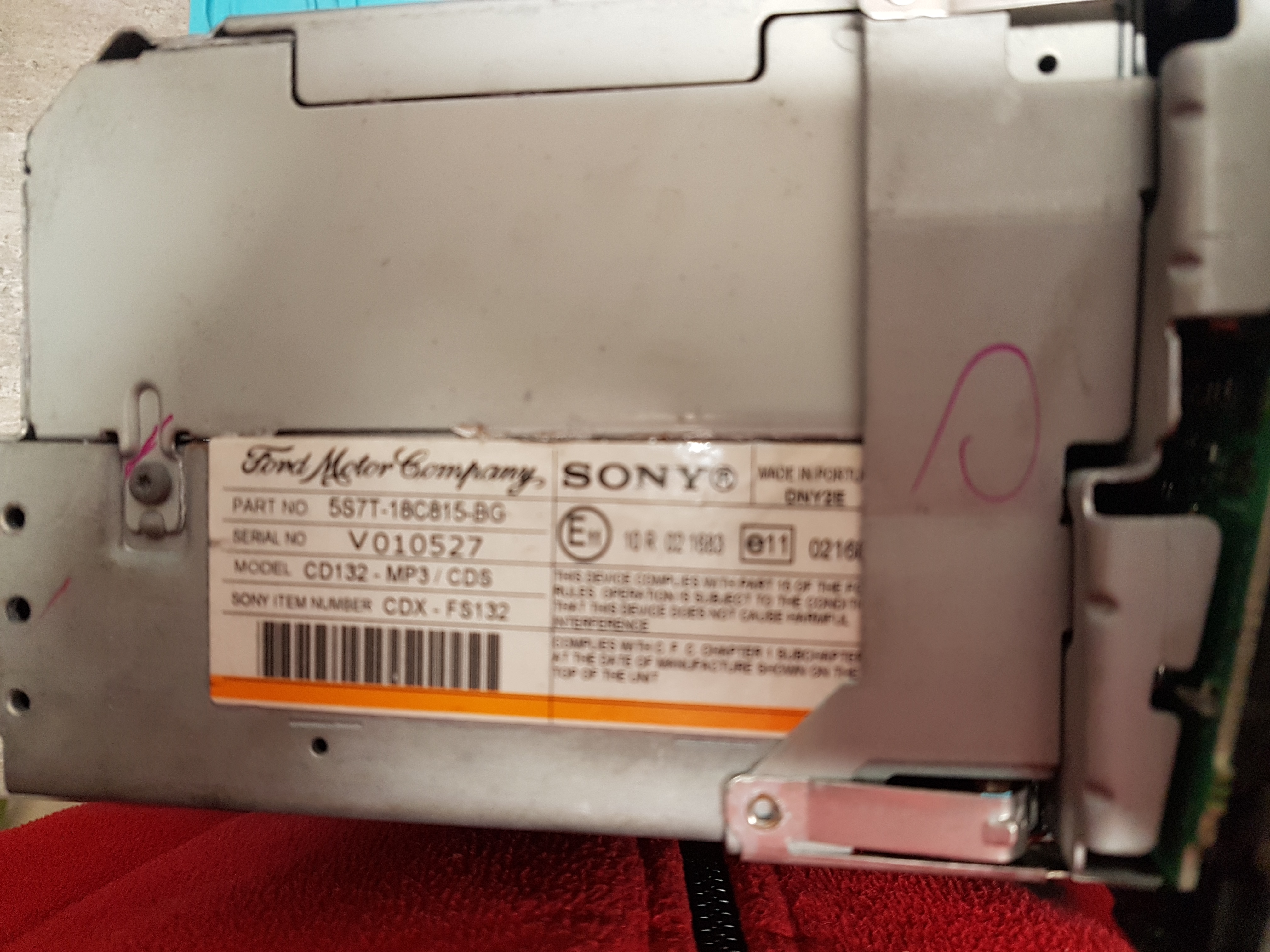 Sprzedam radio Ford Sony CD132 - MP3 / CDS rok 200 - 2007 z Mondeo, radio z rozbiórki sprawne z kodem.